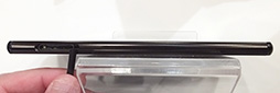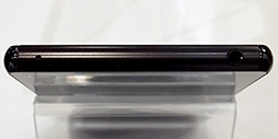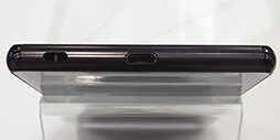 下側面(右):ストラップホールとキャップレス防水仕様のUSB 2.0(Micro-B)端子が並ぶ。実はXperia Zシリーズでキャップレス防水仕様のUSB端子を備えるのは,本機が初めてだったりする