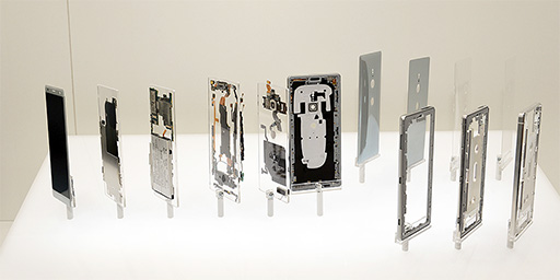 製品の発表が行われた,「Mobile World Congress 2018」会場内のソニーモバイルコミュニケーションズブースのハンズオンエリアでは,新製品2機種と関連周辺機器の実機が披露されていた。本稿では,ハンズオンエリアで撮影した実機の写真を中心に,新型Xperiaの特徴を紹介したい。