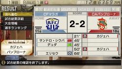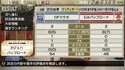 試合終了後には,試合結果の詳細データや,各選手の評価を確認可能。ホームでの試合の場合は,