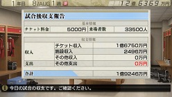 「サポーター獲得情報」「試合後収支報告」なども確認できる。それぞれにしっかり目をとおし,その後のチーム強化や人気獲得につなげたい。
