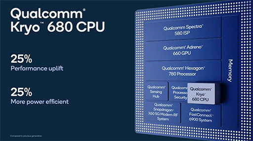 Kryo 680は前世代と比べて,性能と電力効率が25%向上した