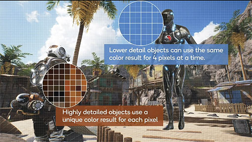 関連記事)を参照してほしいのだが,簡単に説明すると,簡単に説明すると,シェーダで計算するピクセルの解像度を必要に応じて変更しながら描画することで,画像処理の負荷を軽減するものだ。