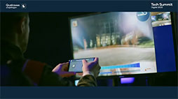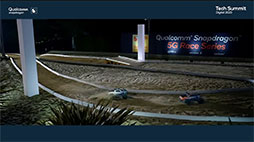イベントでは,Qualcommの本社キャンパスにレース場を作り,ラジコンカーで対戦するというビデオが披露された。5Gのミリ波を使って,ラジコンに搭載したカメラの映像をリアルタイムにストリーミングし,遠隔から操作するというもので,5Gならではの高速・低遅延を発揮したデモンストレーションとなっていた。