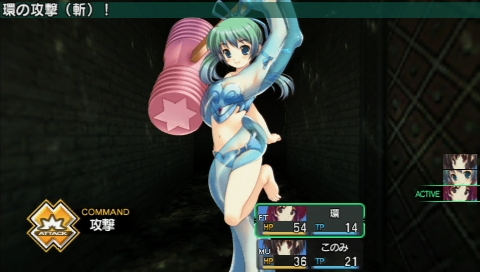 そんなこんなでゲームを進めていくと,途中にイベントや戦闘が発生するものの,最初のダンジョンなのでそれほど苦労せずに1層のボスまで到達できるはずだ。1層のボスは,とあるドジッ娘キャラなのだが,そのドジッ娘っぷりに反して,意外と強いので注意が必要。向かう先に何かがありそうなメッセージが出たときは,ダンジョンのどこでもセーブはできるので,やっておいたほうが良いだろう。なお,1層ボスと戦ううえでのキーワードは,Rボタンでの“チェック”と妨害だ。