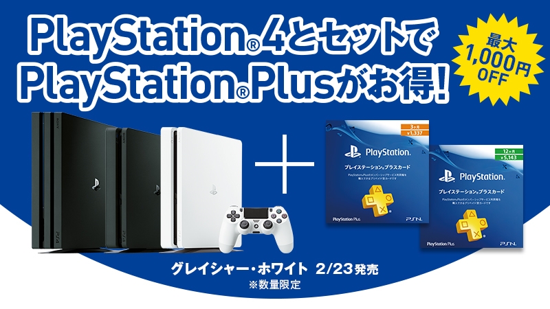 PS4本体とPS Plusカードの同時購入で最大1000円引きになるキャンペーンが実施中