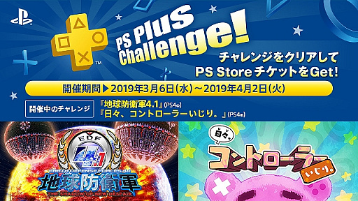 | 【地球防衛軍 4.1 THE SHADOW OF NEW DESPAIR】他「PS Plus Challenge!」(3月分) |
