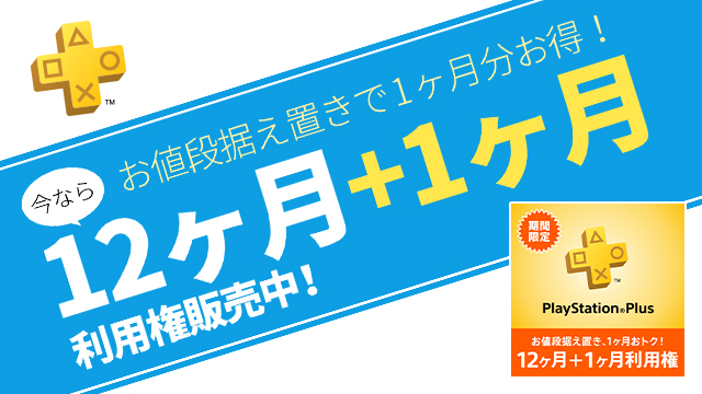 PS Plus,1か月分お得な「12か月+1か月利用権」が本日より期間限定で販売