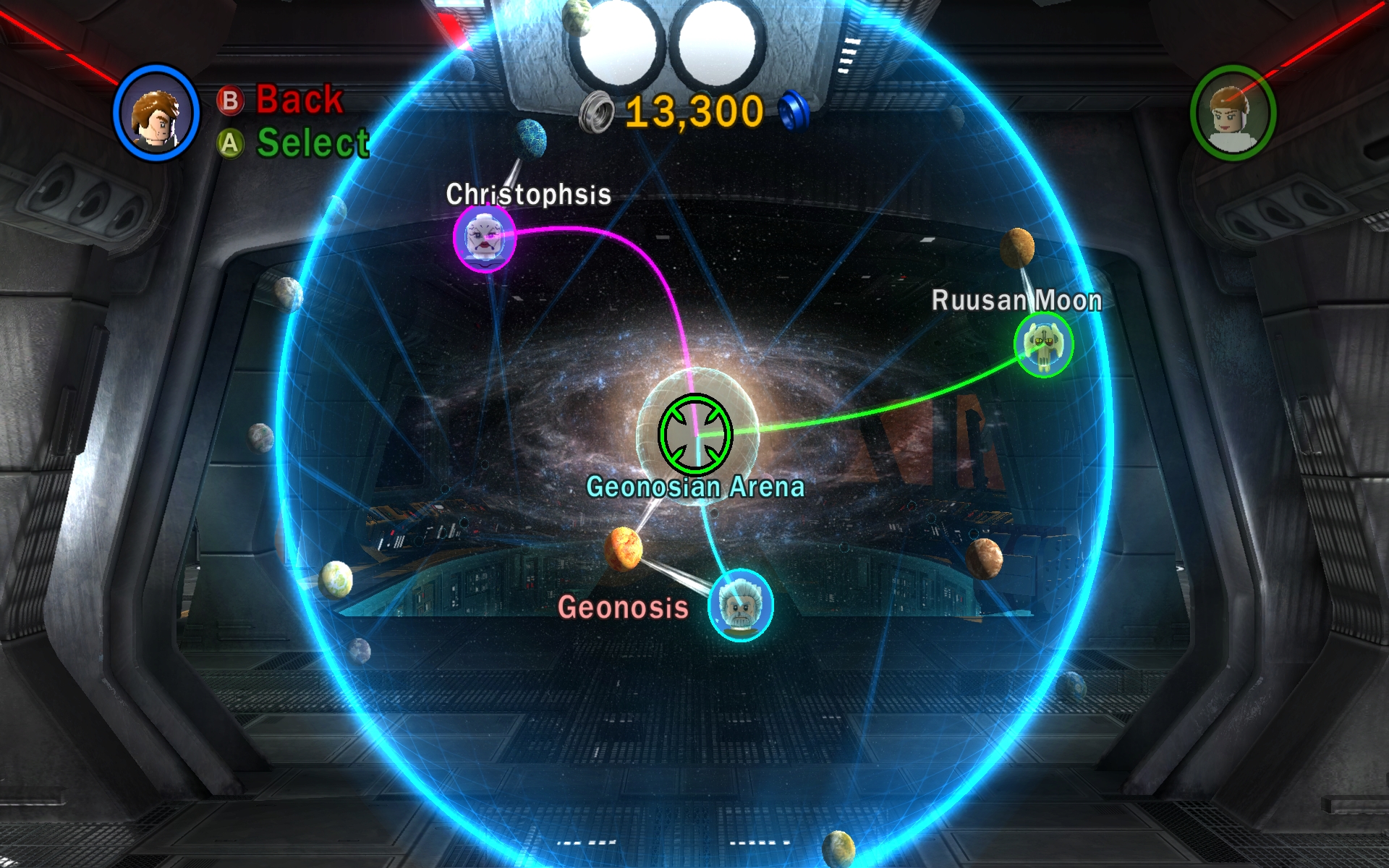 ゲームには「ドゥークー伯爵」(COUNT DOOKU),「アサージ・ヴェントレス」(ASAJJ VENTRESS),そして「グリーヴァス将軍」(GENERAL GRIEVOUS)の3つのシナリオが用意されており,各シナリオは細かく区切られたチャプターからなっている。