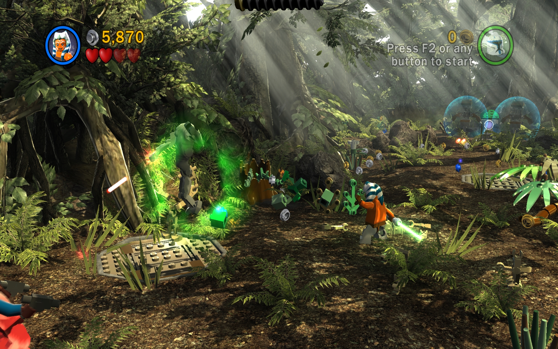 アナキンはライトセイバーを振り回したり,フォースで敵を持ち上げたり,組み立て可能なオブジェクトを作り上げたりでき,仲間のクローン・トゥルーパーは銃やバズーカを使った攻撃や,ワイヤーによる移動,スイッチ操作などができる。