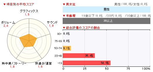 グラフィックス サウンド 快適さ/運営 熱中度/ストーリー ボリューム 1 1 1 2 1 -