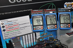 - MOSFETドライバとTop/BottomのMOSFETがそれぞれ搭載された,従来型の8フェーズ電源部を採用するマザーボードで85%の負荷をかけた状態