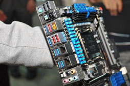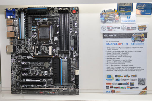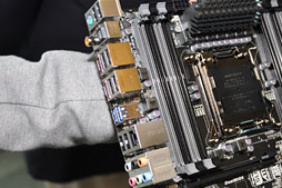 同社のプライベートブースでは,そんなUP型番のマザーボードが並んでいたので,いくつかピックアップして,以下,写真を中心に紹介したい。Xeon用チップセット「Intel C606」を“X79S”として展開するモデルや,AMDのデスクトップPC向け「Trinity」に対応する「AMD A85」チップセット搭載モデルなど,なかなか注目度は高い印象だ。