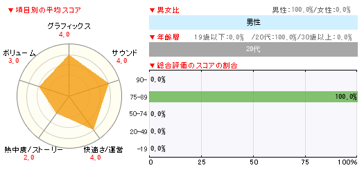 グラフィックス サウンド 快適さ/運営 熱中度/ストーリー ボリューム 4 4 4 2 3
