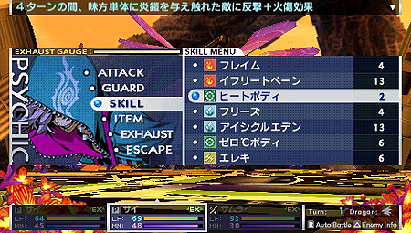 ↑攻撃魔法のイフリートベーン。炎系の最強魔法である。攻撃魔法に特化した育て方をすることで使用可能に。 |