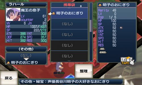 CDのどこかに記載されているパスワードを入力すると本アプリの限定アイテム『明子のおにぎり』が入手できます。