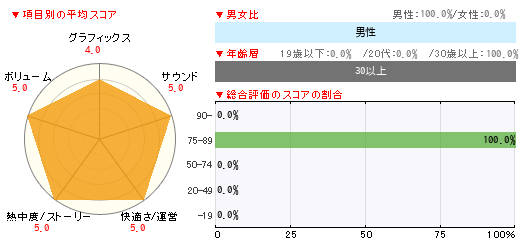 グラフィックス サウンド 快適さ/運営 熱中度/ストーリー ボリューム 4 5 5 5 5