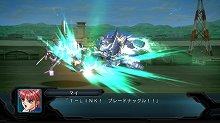 フォース・バスターの発射シーン。俯瞰の視点へスムーズに切り替わる 敵機へ命中