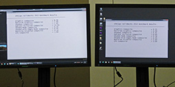 また説明会では,GPU以外が同一構成のワークステーション2台を用いたライブデモも披露されている。下に写真で示したのは,SolidWorks製3D CADツールを用いたベンチマーク「SPECapcSM for SolidWorks 2013」での性能比較。CPUに関するスコア以外,全項目でFirePro W5000がQuadro K2000を上回っているのが分かるだろう。