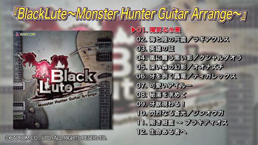 モンスターハンターの楽曲をロックアレンジに仕上げたアレンジCD「BlackLute 〜Monster Hunter Guitar Arrange〜」が本日5月30日にいよいよ発売!