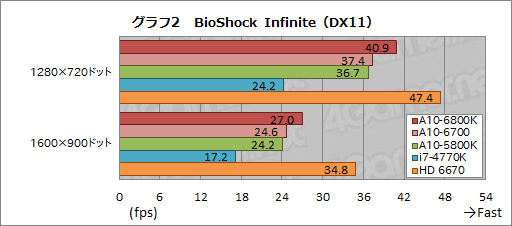 A10-6700とA10-5800Kの力関係もBioShock Infiniteから変わらずだ。