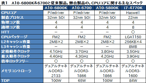 A10-5800Kやi7-4770Kとの比較も実施