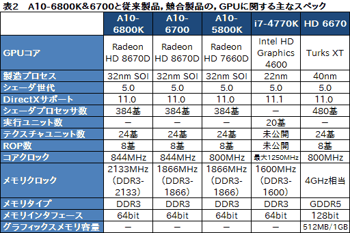 また,APUとCPUの統合型GPUコアだけで比較しても判断が難しいと思われることから,今回は「Radeon HD 6670」(以下,HD 6670)も比較対象に加えることとした。