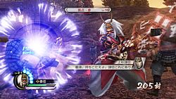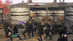 合戦では,敵味方ともに“兵力”を持っており,敵の武将を倒したり,拠点を奪ったりしながら敵軍の兵力を減らしていくことが,戦場での最初の目標となる。そして,敵の兵力が0になると総大将が登場。この総大将を倒すことによってその合戦に勝利したことになり,プレイ内容に応じた戦利品が獲得できる。ちなみにプレイヤー側も,兵力が0になると“本陣守備頭”が本陣に出現し,それが撃破されてしまうと敗北になるので注意しよう。政略パートで兵力を上昇させる“道場”や,兵力の回復量を上昇させる“兵舎”を設置することで,より合戦を有利に進めることができるだろう。