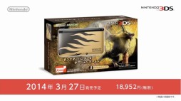 続いて「モンスターハンター4」の情報。セブンイレブンで先行配信されていたイベントクエスト「ゼルダの伝説・決戦の猛炎覇竜」「ゼルダの伝説・力と知恵と勇気」の2本が,映像配信後に通常のイベントクエストとしてダウンロードできるようになることが明かされた。また,ゲーム中に登場する「ラージャン」をモチーフにした特別仕様のニンテンドー3DS LLが2014年3月27日に数量限定で発売となることが発表。ACアダプター付属で,価格は1万8952円(税別)。