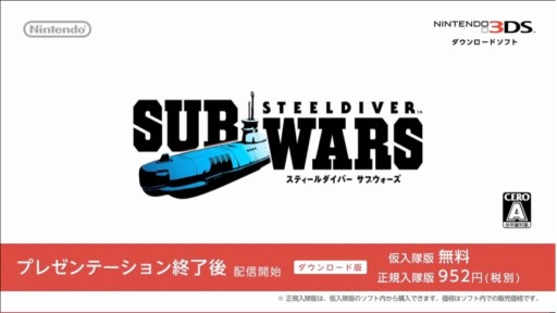 2011年5月12日に発売されたアクションゲーム「スティールダイバー」がリメイクされ,FPSとなった「STEELDIVER SUBWARS」が発表。FPS特有の素早い動きが必要なゲームではなく,相手の動きを読み,ゆっくり進む魚雷を命中させるという,じっくり攻略するゲームとなっている。マルチプレイにも対応しており,ローカル通信やインターネットで最大4対4の対戦が可能だ。