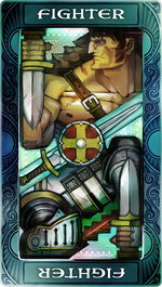 ファイターは剣を武器に戦う職業で,素速さは標準的だが攻撃力,防御力ともに優れており【□ボタン】を連打しているだけでザコ敵をなぎ倒せるという,扱いやすい職業だ。攻撃だけでなく盾を使用したガードも特徴的で,【□ボタン】を押し続けていれば味方の盾としても活躍できる。パーティでは積極的に敵に近づいて攻撃する前衛役をつとめ,サポート役の味方の援護を受けつつ敵を撃破していこう。