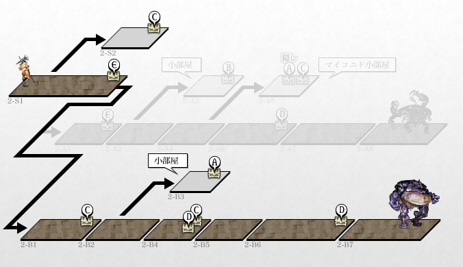 兎にも角にも,松明の確保が最優先。突入時に松明を持ってない場合は,マップにある柱を攻撃すると松明が落ちてくることもあるので覚えておくといい。とはいえ,Bルート突入前のマップなら確実に拾えるので,そちらで拾った方が無難だろう