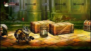 道中にあるバリスタは威力が高く,全弾当てれば大きく体力を奪える点が魅力だ。しかし,使用中は移動速度が遅くなるため,攻撃を喰らうリスクも高くなる。バリスタ使用中は上下に移動し,敵の攻撃を避けよう |
