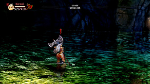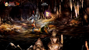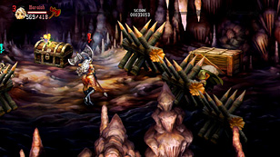 ここを安全に通過する手段を紹介しよう。実はこのフロア,ダッシュやジャンプで敵をすべて無視していけば,ノーダメージで突破できるのだ。ただし,道中に設置されている丸太槍のトラップに注意が必要