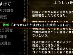 ステージ中にランダムで出現する,カゴに捕らわれた妖精を救出するという依頼だ。ティキのへそくりは決して多くはないが,得られるスキルポイントを考えると,ぜひとも達成してあげたいところだろう。ただし目標となるカゴの位置はランダムであるため,達成にはどうしても時間がかかってしまう。受注したら気長にプレイして,少しずつこなしていくのがいいだろう。