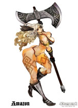 両手武器を好んで使う、恐れを知らない屈強な女戦士。重く大きい武器での攻撃は大ぶりで力任せだが、多くの敵を巻き込んで致命傷を与える。軽装で身のこなしに優れており、武器がない場合は蹴りを主体に暴れまわる。