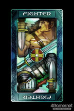 フルプレートの鎧を着込み、頑丈な盾を装備した戦いのエキスパート。防御力が最も高く、盾によるガードは周囲の仲間も守ることができる。片手に持つ武器はリーチこそ欠けるが、振り回す速度は凄まじく、周囲の敵を竜巻のように斬りつける。