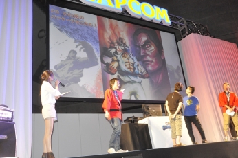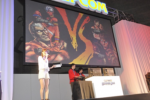 これは流石にプロゲーマーチームが強すぎて勝負にならないのではと思われたのだが,意外や意外,開発者チームが序盤からスーパーアーツを決めまくり,プロゲーマーを圧倒した。プロゲーマーチームも追い上げを見せるが,逆転するまでには至らず,なんとカプコンチームが勝利。どうもプロゲーマーチームが手加減していたようなのだが……ここではそんな野暮は抜きにしたい。