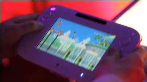 次のムービーに映っているゲームは,Wiiで発売されている「スーパーマリオブラザース」をWii U向けにアレンジしたもの。基本的な部分はそのままだが,解像度が上げられたほか,マリオなどお馴染みのキャラクター以外に,Miiを使えるようになっていた。