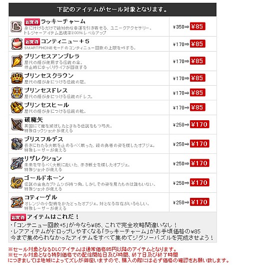■デススマイルズセールアイテム一覧