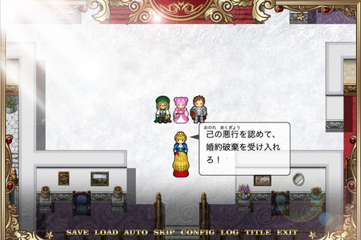 日英露の3カ国語に対応したマルチエンドノベルゲーム。ここにあげた作品の中では比較的早期に公開されているが,この時点ですでに断罪や婚約破棄といった,なろう系悪役令嬢の特徴が含まれている(図8)。