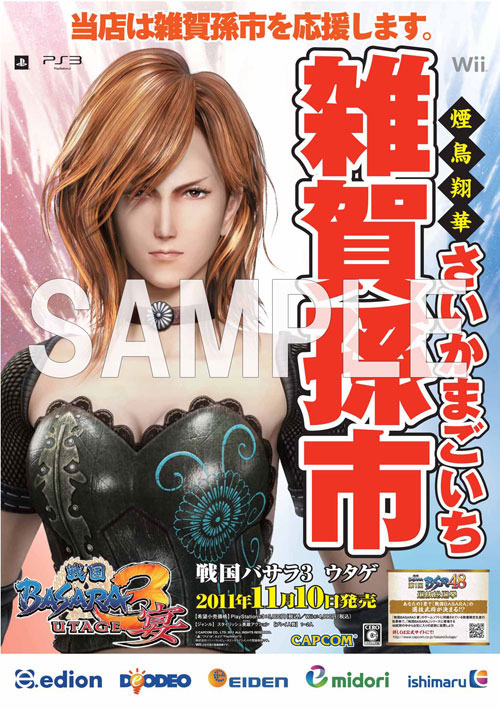 • 画像ギャラリー No.007 | 「戦国BASARA3 宴」,「戦国BASARA 第1回 BSR48選抜総選挙」の武将達をゲームショップが応援。対象店舗には“武将応援ポスター”が登場
