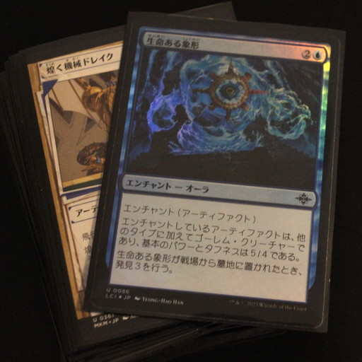 ![]() コラボセットのカード。一番右がアスタリオン。エッチングFoilという艶消しの光り方をするカードで渋くてかっこいい |