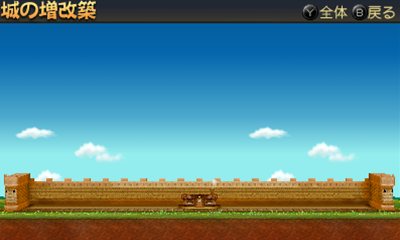 城壁は城下町を囲うようにして設置されています。位置は固定で、新たな城壁を作る場合は上書きという形になります。城壁は城下町を魔物からの襲撃など、「外敵から守る」という役割があります。