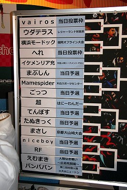 当日予選には100人近くのプレイヤーが参加し,激しい戦いを繰り広げた。その結果,vairos選手,へれ選手,まぶしん選手,ごっつ選手,てんぼす選手,たぬきっく選手,niceboy選手,RF選手,じゅんや選手,ぽてんひっと選手の10名が本選出場権を獲得した。