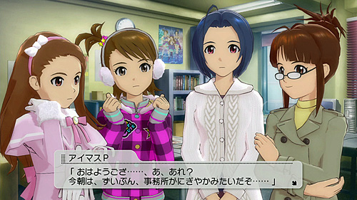 東京のとある雑居ビルに本社を置く芸能事務所,765プロには13人のアイドルが所属している。弱小事務所という話なのだが,それにしては所属アイドルが妙に粒ぞろいで,とくに頭にリボンを結んだ子なんかほんとにもう,かわいいというか……あ,すいません。ともあれ,以前お伝えしたように,このうち,一足お先にメジャーデビューしたユニット「竜宮小町」のプロデューサーである秋月律子とメンバー3人を除いた9人の中から,3人一組のユニットを作り,トップアイドルの証であるアイドルアカデミー(IA)大賞の獲得を目指すことになるのがアイドルマスター2というゲームだ。