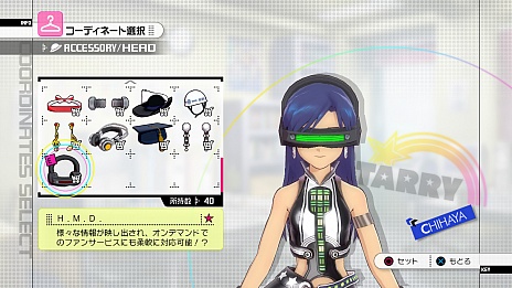 「H.M.D.」。これは,次世代ライブに対応したヘッドマウントディスプレイであり,オンデマンドでのファンサービスにも対応しているという逸品だ。書いているほうも意味がよく分かっていないので安心してほしい。「アイドルマスター」でも,ファンからごくたまにプレゼントされるレアアイテム(DLCで購入も可能)として「H.M.D.」があったのだが,今回は無料アクセとして登場したわけで,ヘッドマウントディスプレイには