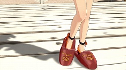 「765プロ社用スリッパ」となっており,そ,そうきたか! モノはえび茶色の普通のスリッパで,箔押しで「765プロダクション」の文字が入っている。アニメ「アイドルマスター」を見る限り,765プロ所属アイドルは全員,自分の靴を履いているみたいだが,そういえば高木順二朗社長はスリッパを履いていたような気がしないでもない(うろ覚え)ので,事務所のどこかに土足禁止の場所があるのかもしれない。本来は来客用とのことだが,なんだか,普通に売ってたらつい買ってしまいそうだ。