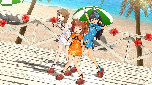 もう一つの「エキゾチックチャイナ」は,その名のとおりチャイナドレス風の衣装で,裾が短くスリットも深めという,なんかもう,思わずありがとうと世界にお礼を言いたくなるような衣装だ。2007年8月に配信された「アイドルマスター」向けDLC