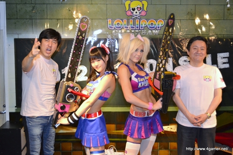 今回は,本作のクリエイティブディレクターである須田剛一氏(グラスホッパー・マニファクチュア代表取締役)とエグゼクティブプロデューサーの安田善巳氏(角川ゲームス 代表取締役社長),本作のイメージガールである川本まゆさんとジェシカ・ニグリさんが出演した,ステージイベント「LOLLIPOP CHAINSAW プレミアムグッズ プレゼント大会 in AKIBA」の模様を中心にお伝えしよう。