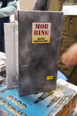 新作を求めるお客さんで,終始人だかりができていた,海外輸入ゲームの専門店バネストのブース。尽きないお客に忙しく対応していた中野将之店長によれば,今回のオススメはカードゲーム「MOBBING - Reine Chefsache !」とのこと。「会社の内部でうまーく実績を作る素敵なゲーム」らしい。